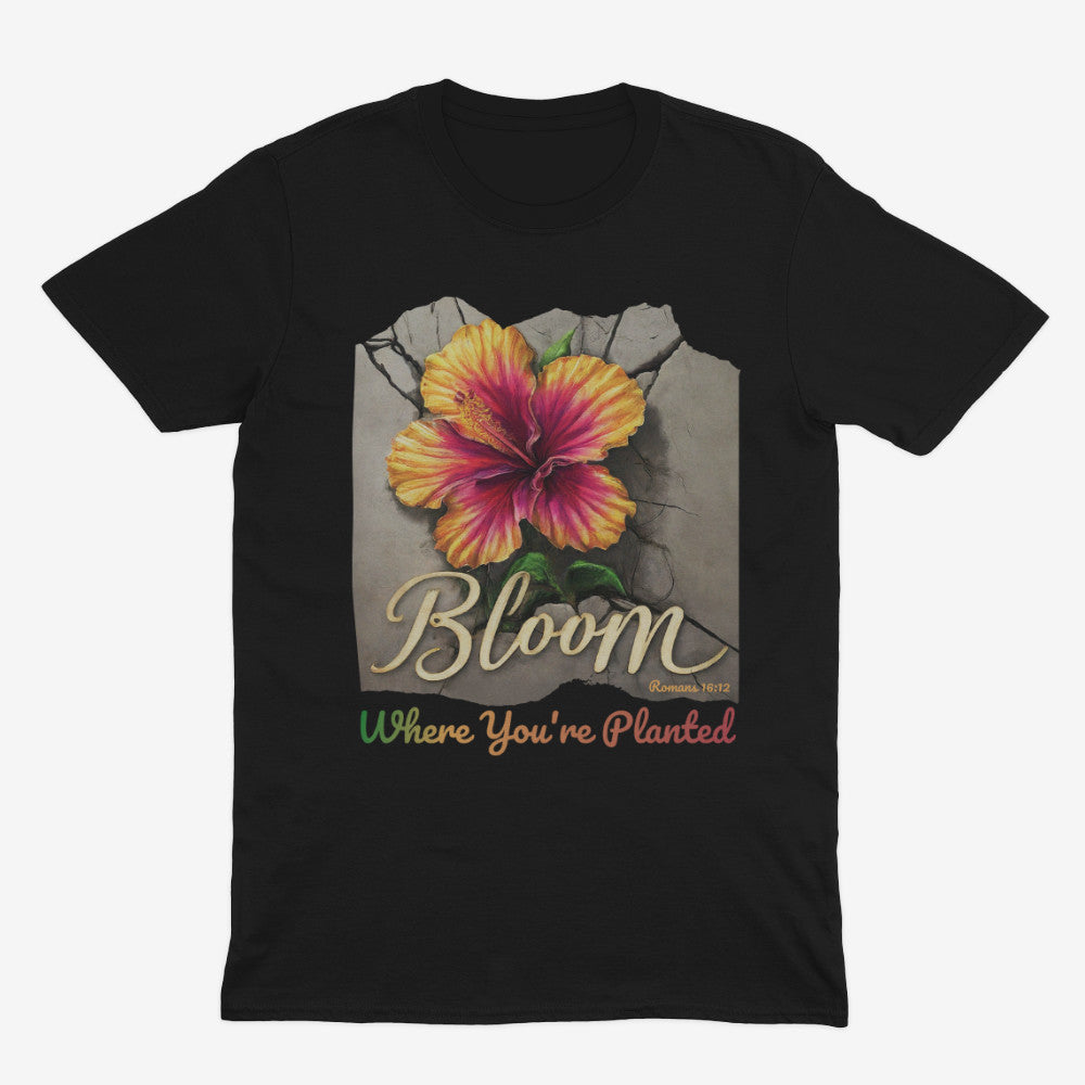Feeling stuck or discouraged? This "Bloom Where You're Planted" t-shirt is a powerful reminder that God has a plan for you, right where you are. Wear it as a symbol of hope and growth.